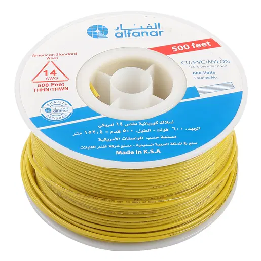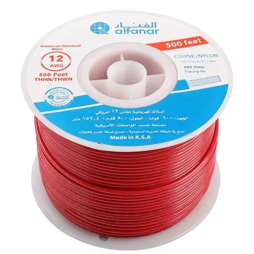 سلك كهرباء مفرد من إنتاج شركة الفنار، بطول 500 قدم، مصمم لنقل التيار الكهربائي بشكل آمن وفعال في التطبيقات المنزلية والصناعية. يوفر العزل حماية جيدة ضد الصدمات الكهربائية والعوامل البيئية، ويأتي بجودة عالية لضمان الأداء المستمر.