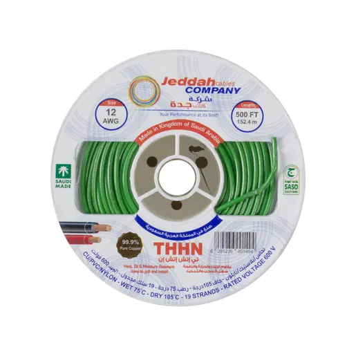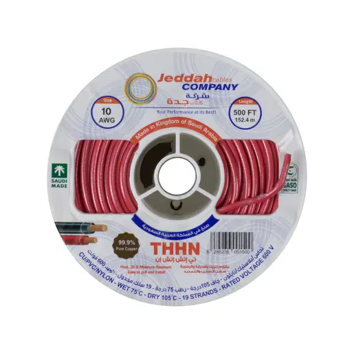سلك كهرباء مفرد من نوع جدة بطول 500 قدم ووفق تصنيف AWG، مخصص لنقل التيار الكهربائي بكفاءة وأمان في مختلف التمديدات الكهربائية. يتميز بموصل نحاسي عالي الجودة وعزل قوي يوفر حماية موثوقة ضد الصدمات الكهربائية والحرارة والعوامل البيئية، مما يجعله مناسبًا للاستخدام السكني والتجاري والصناعي الخفيف.